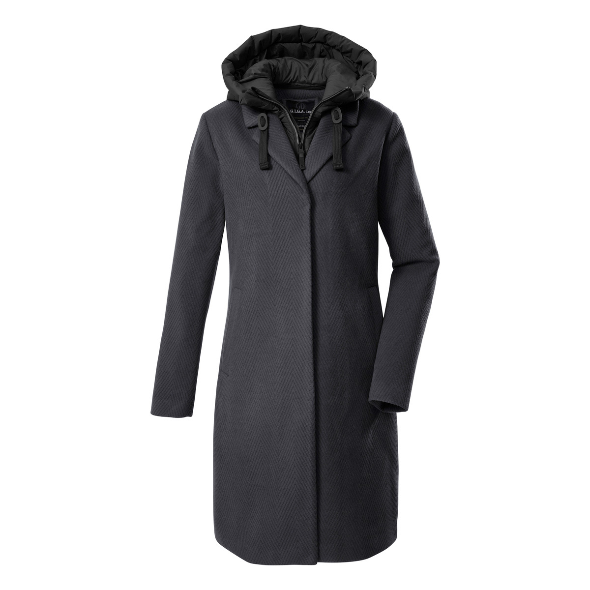 The wind-repellent G.I.G.A. DX women’s parka with an elegant herringbone look and zip-in gilet is perfect for the cooler seasons. The hood is adjustable and can be removed if required. The parka can be fastened with concealed press studs. It is also equipped with two side slit pockets. This jacket is partly made from recycled material.