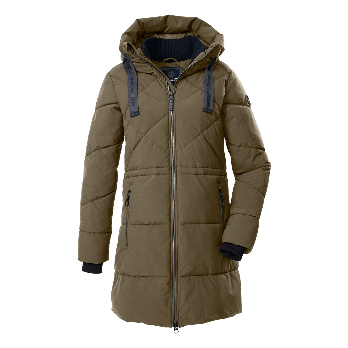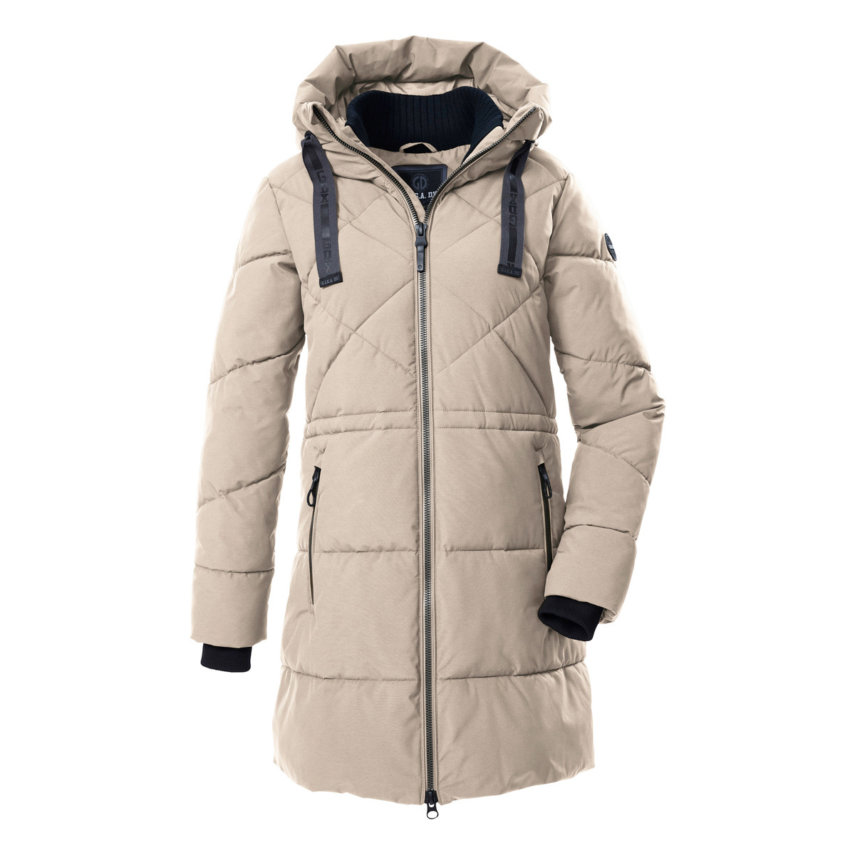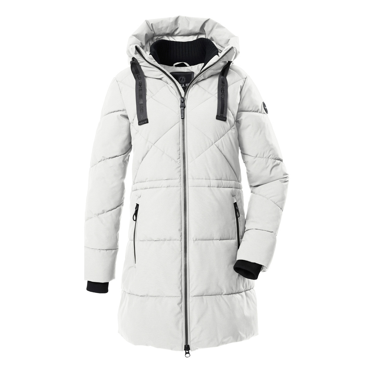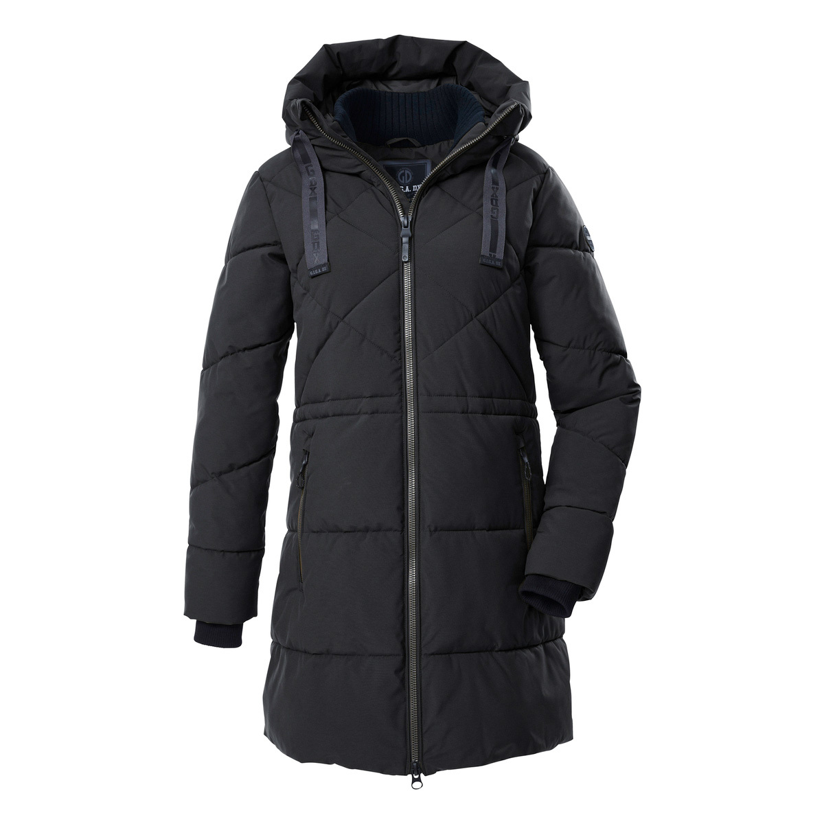 The thickly lined functional parka with modern quilting from G.I.G.A DX is the right choice for winter. It is water-repellent and windproof with an 8,000 mm water column. It is also breathable. The large hood is adjustable. The knitted cuffs keep you warm and are particularly comfortable. The 2-way zipper can be opened from the top and bottom for freedom of movement. Two large zipped pockets and an inside pocket offer storage space for your cell phone, keys etc. This parka has been impregnated without PFAs and is partly made from recycled material.