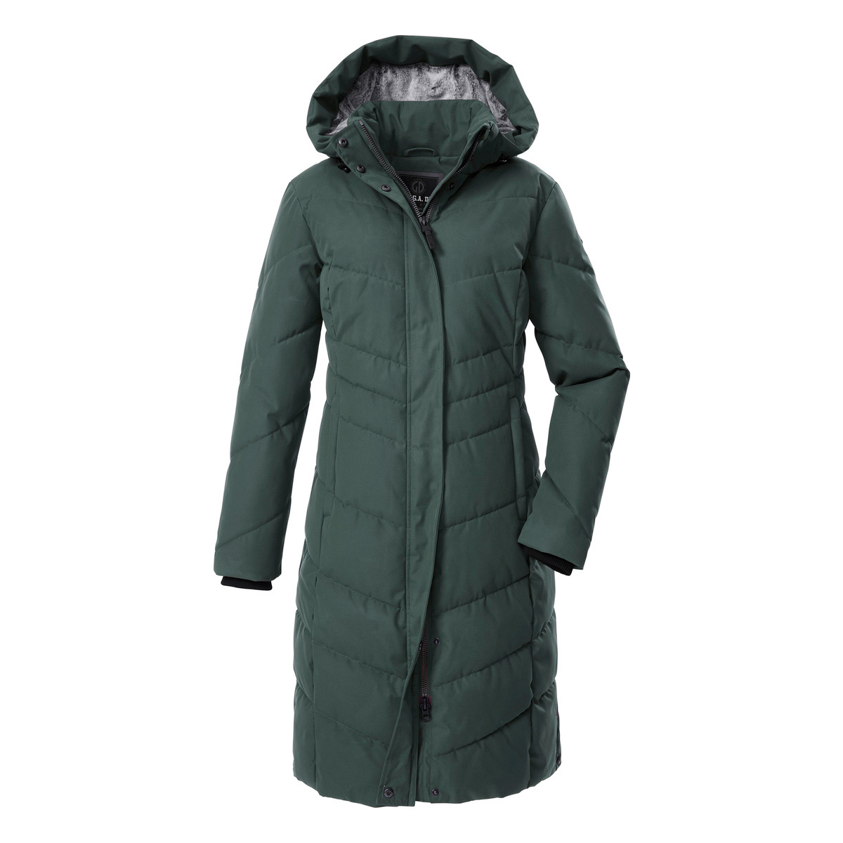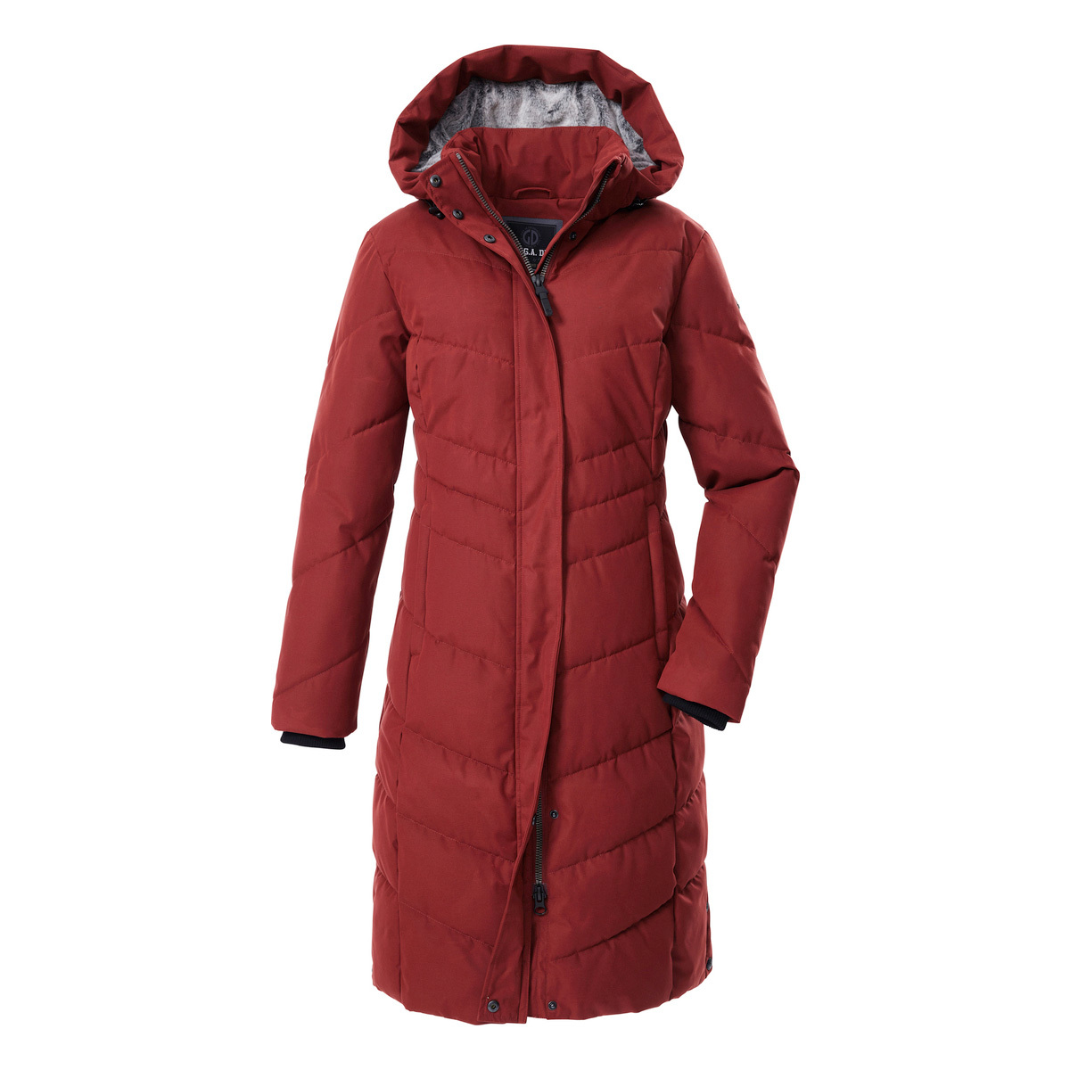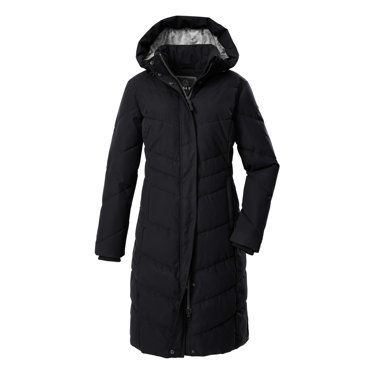 Winter can come with the thickly lined women’s functional coat in a down look from G.I.G.A. DX. The quilted coat is water-repellent and windproof with an 8,000 mm water column. The softly lined hood can be adjusted and removed if required. The concealed 2-way zipper and side press stud plackets ensure plenty of freedom of movement. Side zip pockets and an inside pocket provide storage space for your cell phone, keys etc. The cuffs have comfortable knitted cuffs to prevent the wind and cold from penetrating. This coat has been impregnated without PFAs and is partly made from recycled materials.