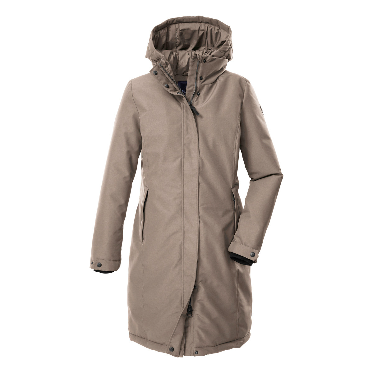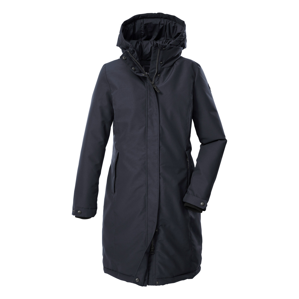 The women’s functional coat with hood from G.I.G.A. DX is a reliable companion through the winter. It is thickly lined and has taped seams. The coat is windproof and waterproof with a 10,000 mm water column and breathable with a water vapor permeability of 3,000 g/m²/24 h. The concealed 2-way zipper can be opened from the top and bottom, ensuring freedom of movement. The adjustable cuffs are fitted with comfortable knitted cuffs. The two side pockets can be closed so that nothing gets lost. An inside cell phone pocket offers additional storage space. This coat has been impregnated without PFAs and is partly made from recycled material.