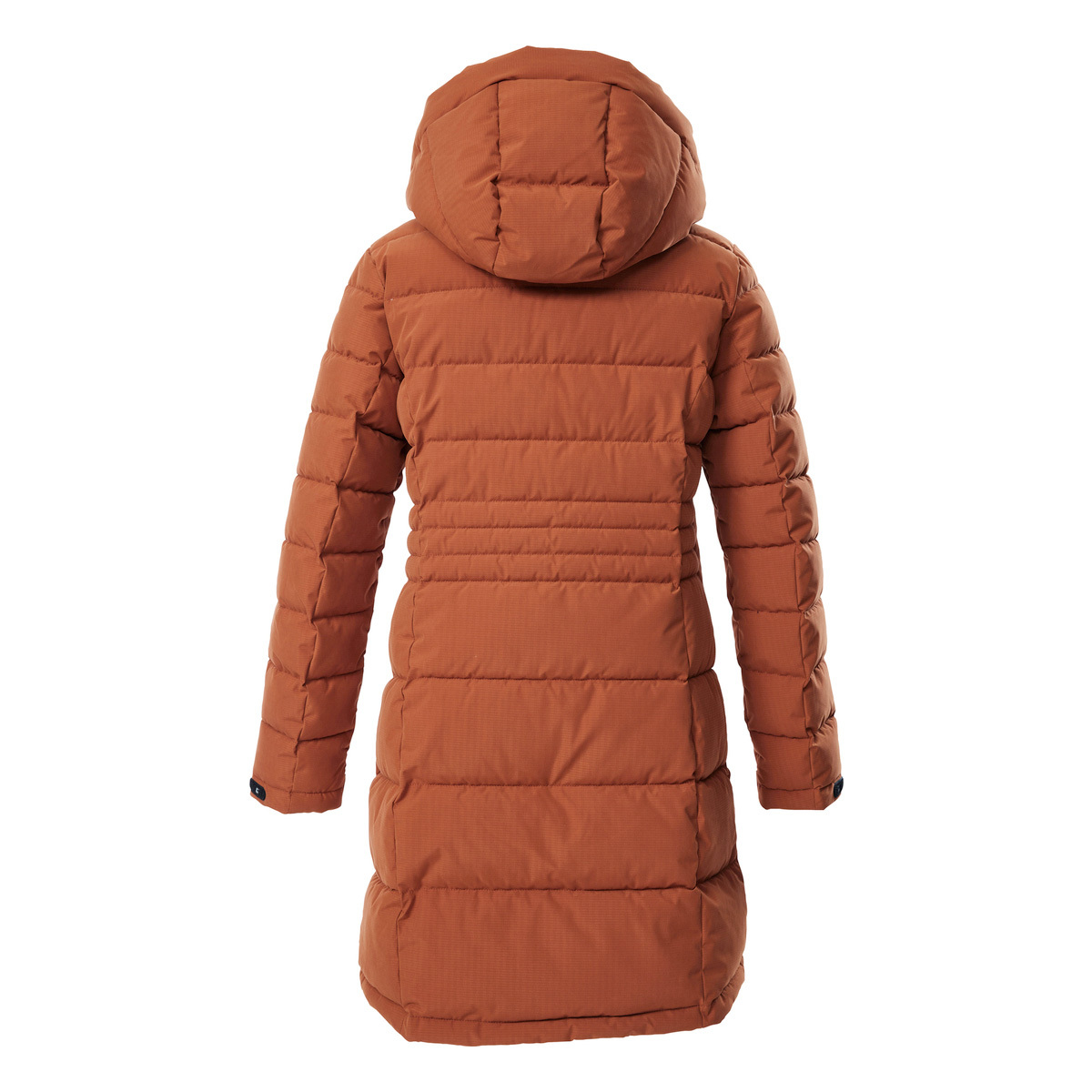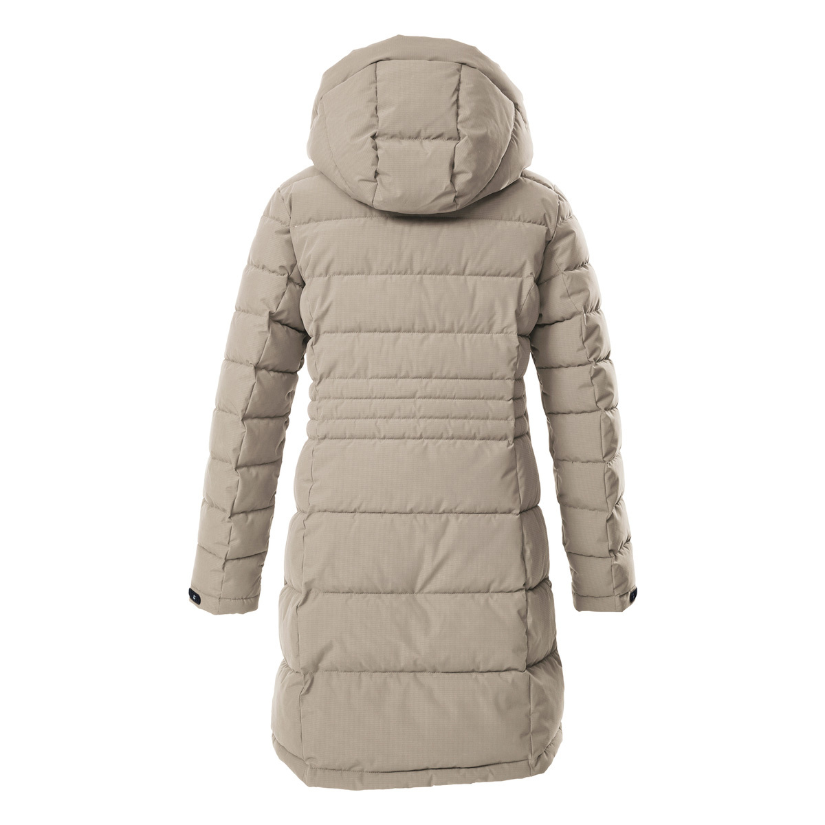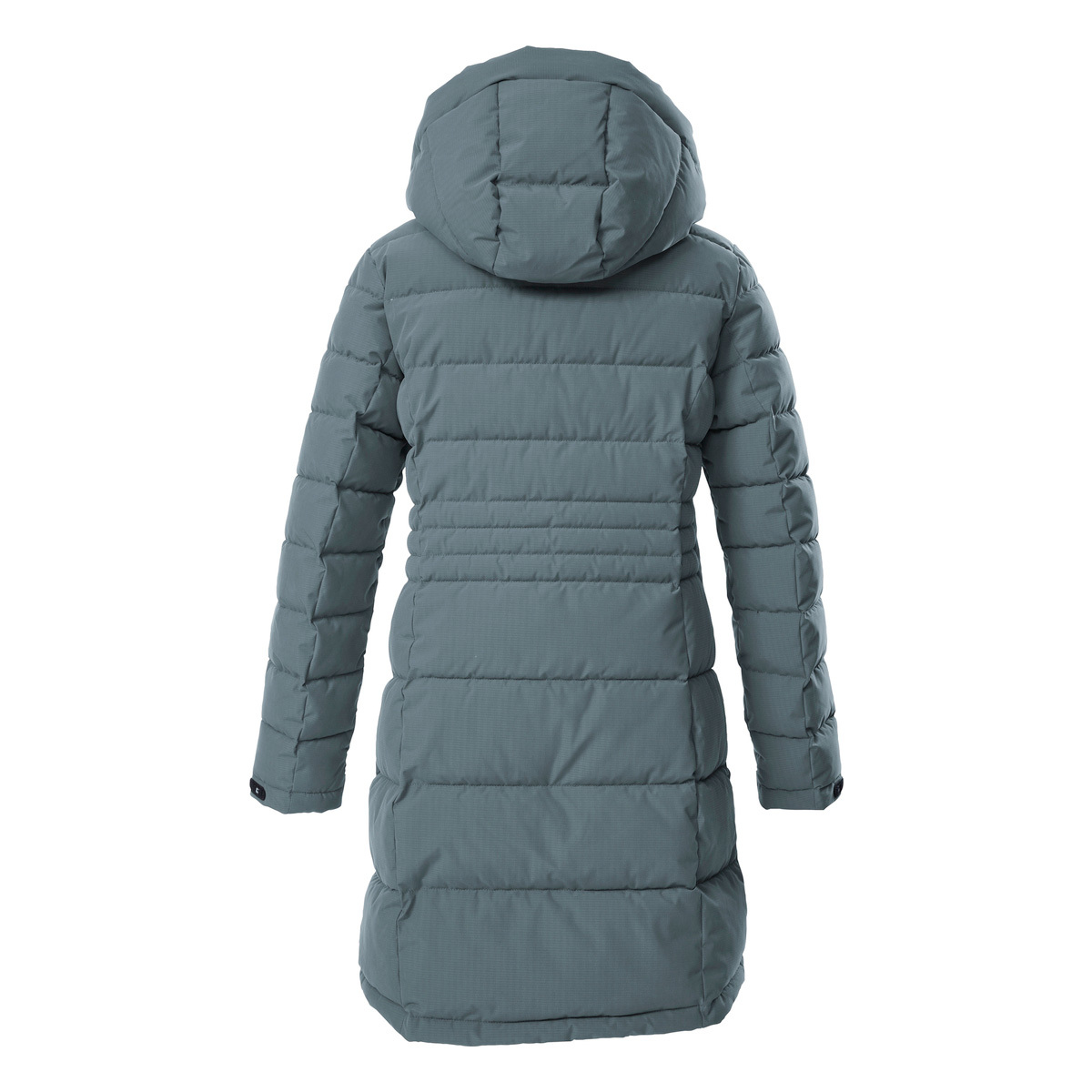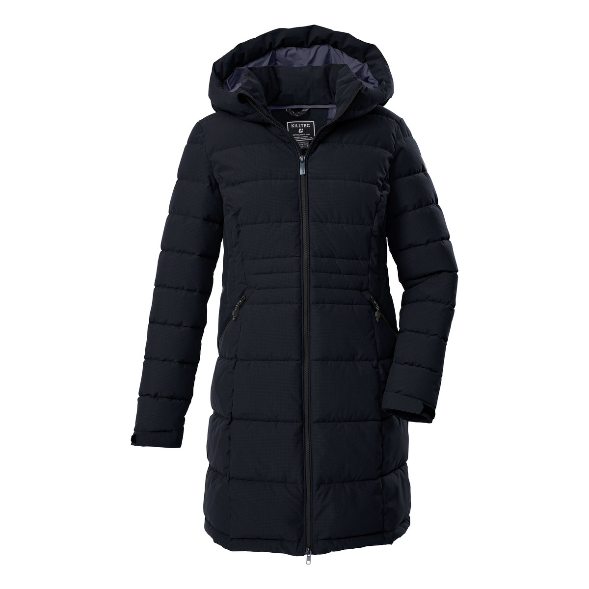 Winter can come with the women’s functional parka in a down look from killtec. It is water and wind repellent with a 10,000 mm water column and breathable at the same time. The hood and cuffs are adjustable. The two side pockets can be closed with zippers so that nothing gets lost. The front zipper has a practical chin guard to prevent the skin from being pinched. The parka stands out visually with its sophisticated quilting and large hood. This jacket has been impregnated with fluorine-free agents and is partly made from recycled material.