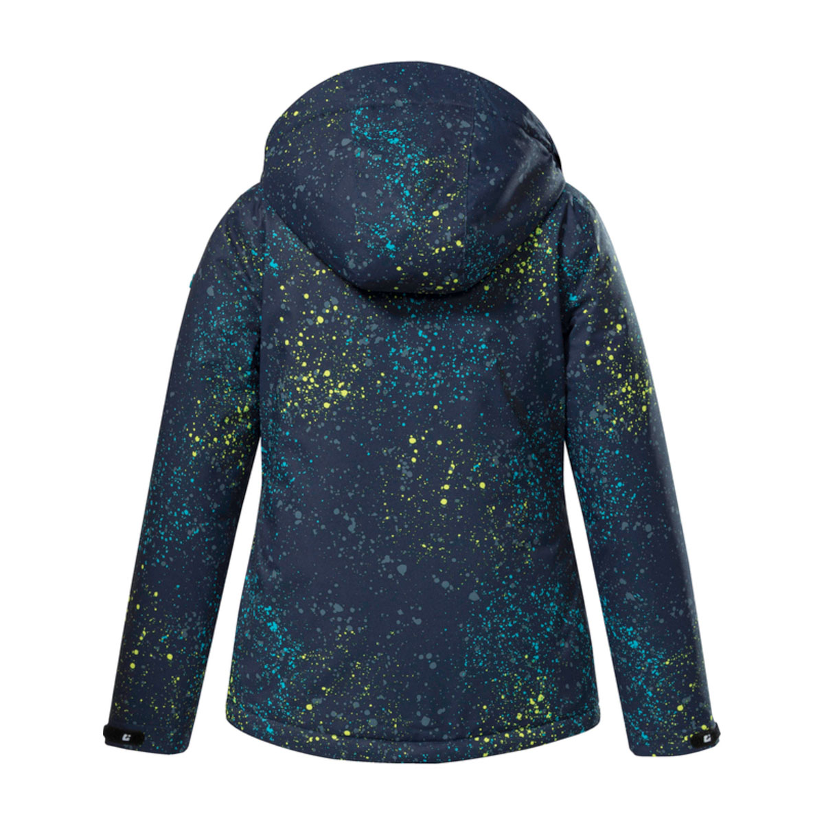 The killtec winter jacket for girls is ideal for all outdoor adventures and the cool all-over print ensures a good mood. The jacket is waterproof and windproof thanks to taped seams and a 10,000 mm water column. The breathable coating on the outside and the warm fleece lining on the inside ensure a good body climate. The hood, which is also lined with fleece, and the cuffs can be adjusted. The hem can be adjusted with a drawstring. Two zipped side pockets and an inside pocket provide plenty of storage space for important items. The front zipper is equipped with a chin guard. This functional jacket has been impregnated with fluorine-free agents.