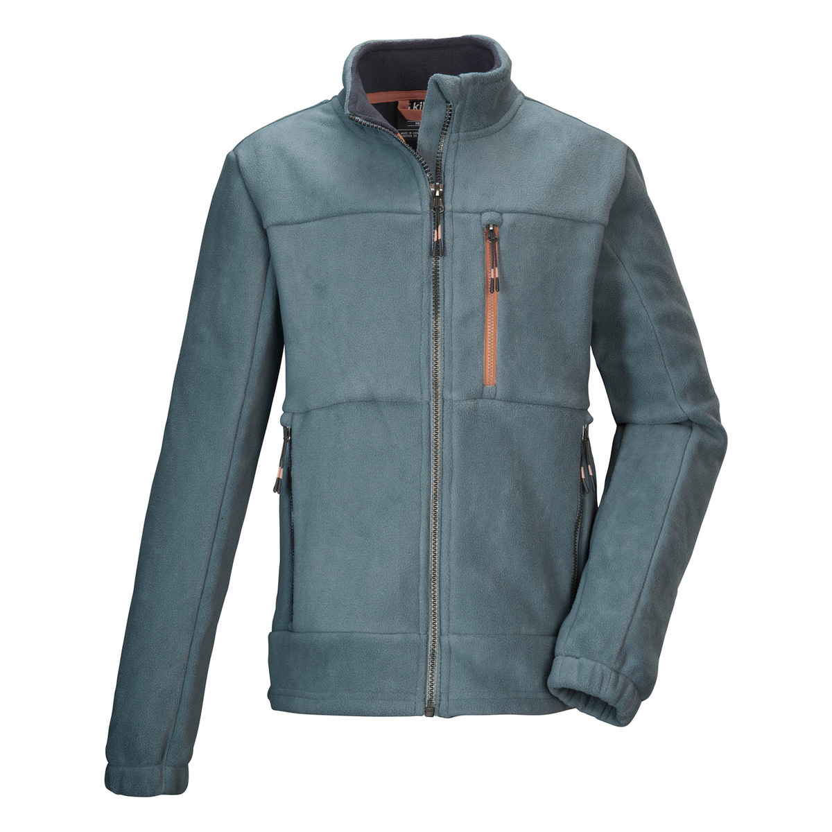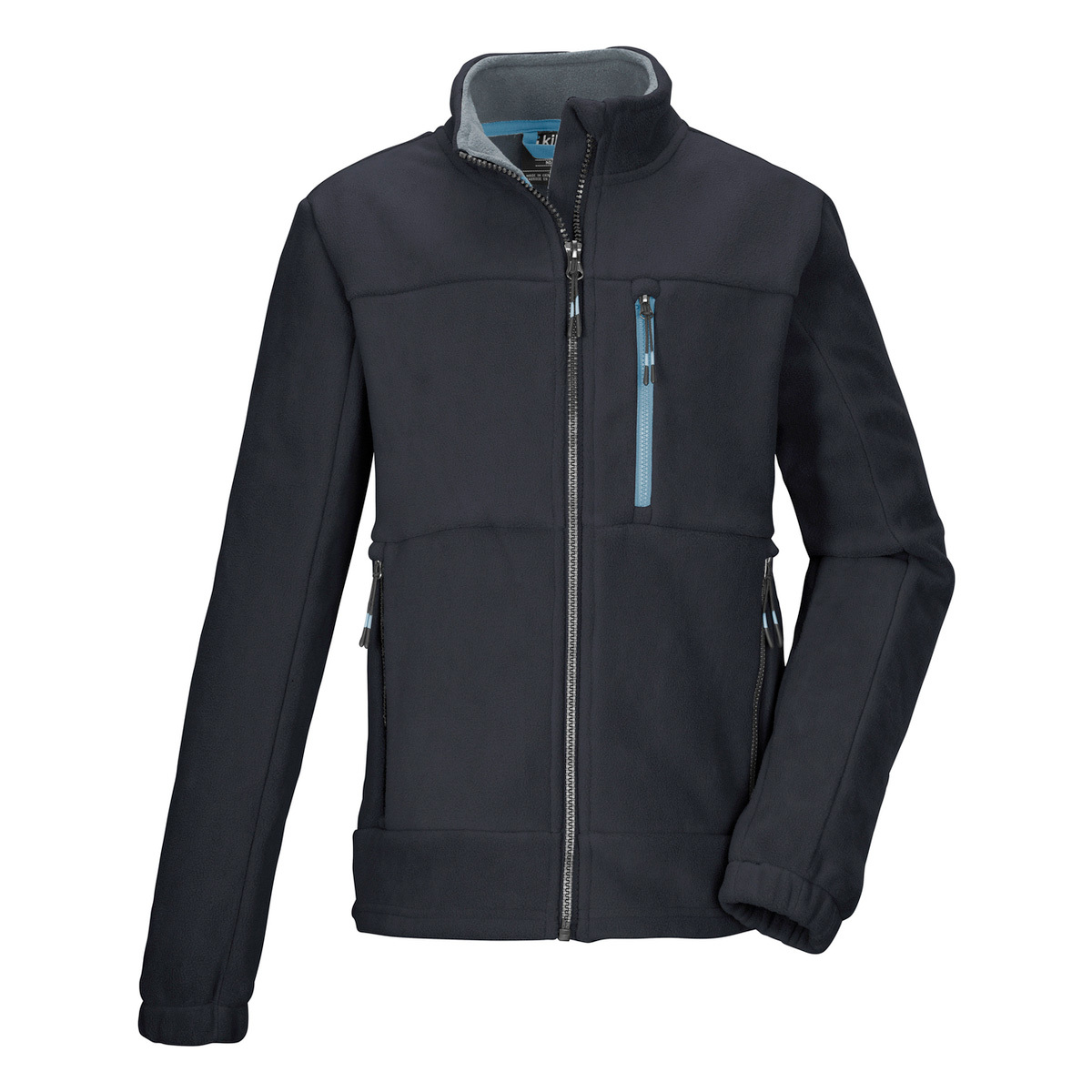 The killtec children’s fleece jacket with stand-up collar and elasticated cuffs is the perfect companion for the cold season and is ideal as a mid-layer under a weatherproof jacket. The soft and stretchy material keeps you nice and warm. The front zipper has a chin guard to prevent the skin from being pinched. The two side pockets and the chest pocket can be closed with zippers so that nothing gets lost.