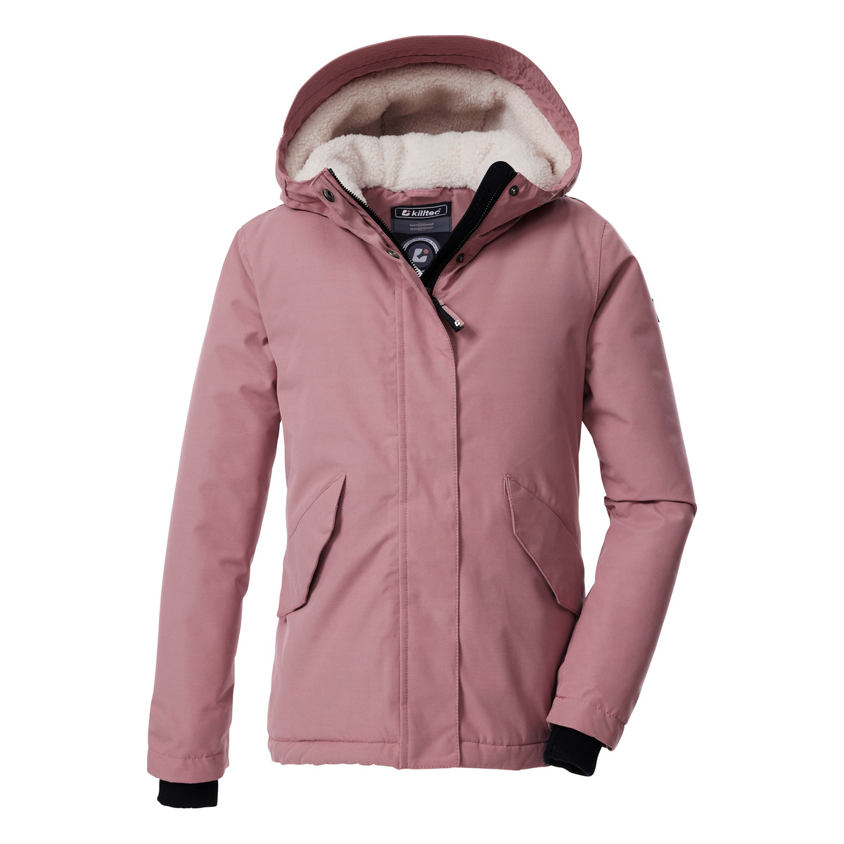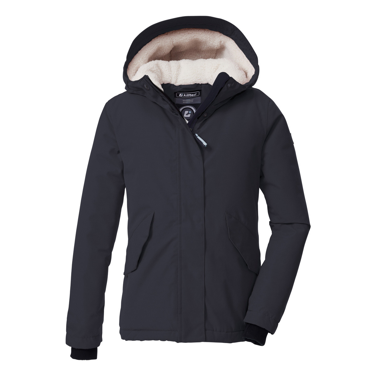 The killtec functional jacket for kids impresses with its cool design and great features. The thickly lined jacket has taped seams and is wind and waterproof with a 10,000 mm water column. The soft teddy fur inside and in the hood keep you cozy and warm. The hood with elasticated drawstring and peak is adjustable. The cuffs are fitted with comfortable knitted cuffs. The concealed zipper has a practical chin guard to prevent the skin from being pinched. This jacket has been impregnated without PFAs.