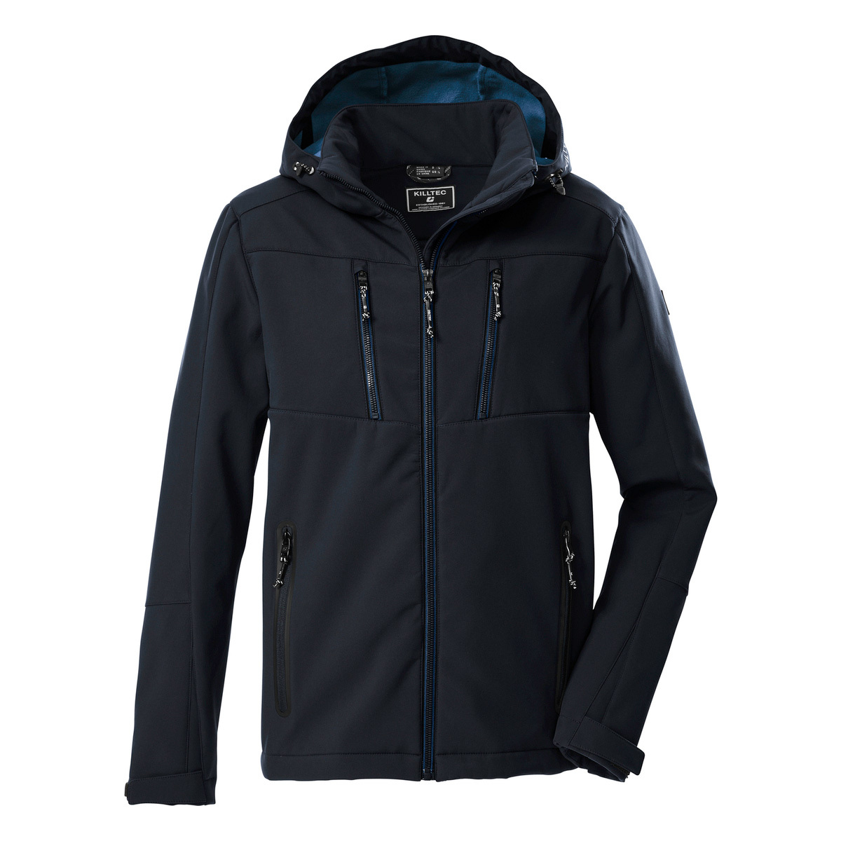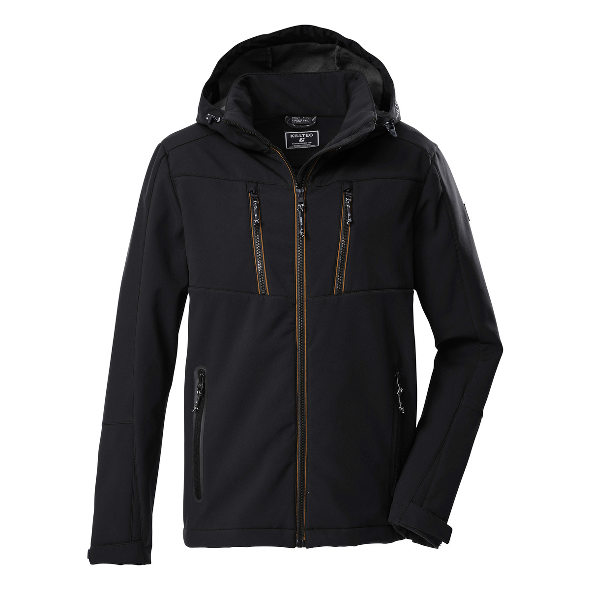 The functional men’s softshell jacket from killtec is the perfect companion in wind and weather. The jacket is water and wind repellent with a 10,000 mm water column and is breathable. The hood is adjustable and can be removed if required. The soft fleece lining makes the jacket particularly comfortable to wear and keeps you warm. The two chest and side pockets can be closed so that nothing gets lost. The cuffs can be adjusted using Velcro fasteners. This jacket has been impregnated without PFAs.