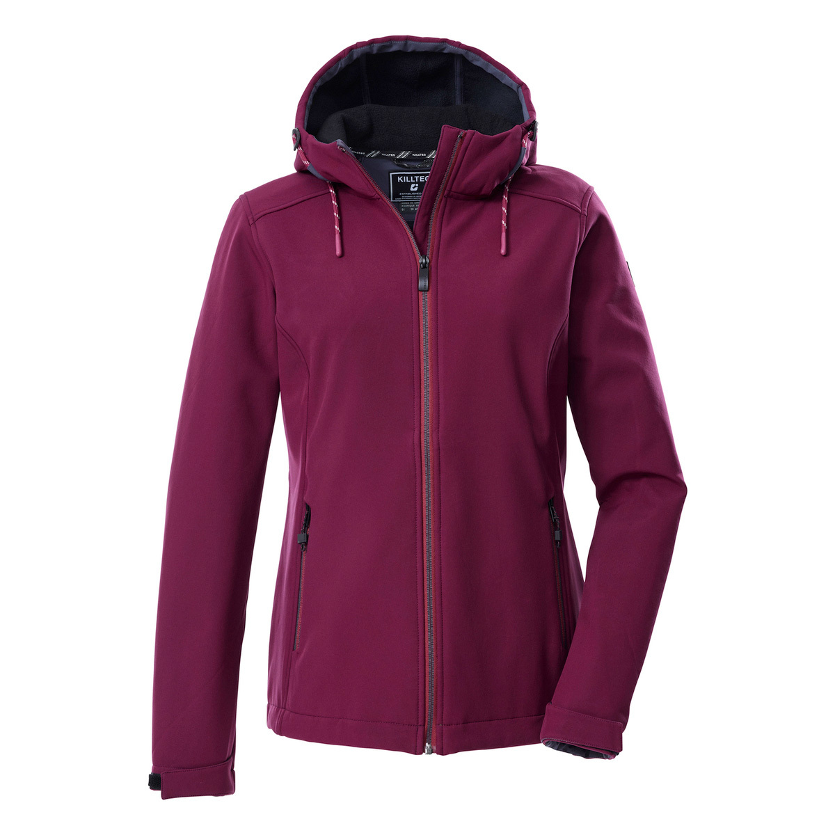 The killtec women’s softshell jacket with adjustable hood is the perfect companion in wind and weather and ideal for the transitional season. It is water and wind repellent with a water column of 10,000 mm and at the same time breathable with a water vapor permeability of 3,000 g/m²/24 hours. The width of the hem and cuffs can be adjusted. The two side pockets can be closed with zippers. The practical chin guard on the front zipper prevents the skin from being pinched. This jacket has been impregnated without PFAs.