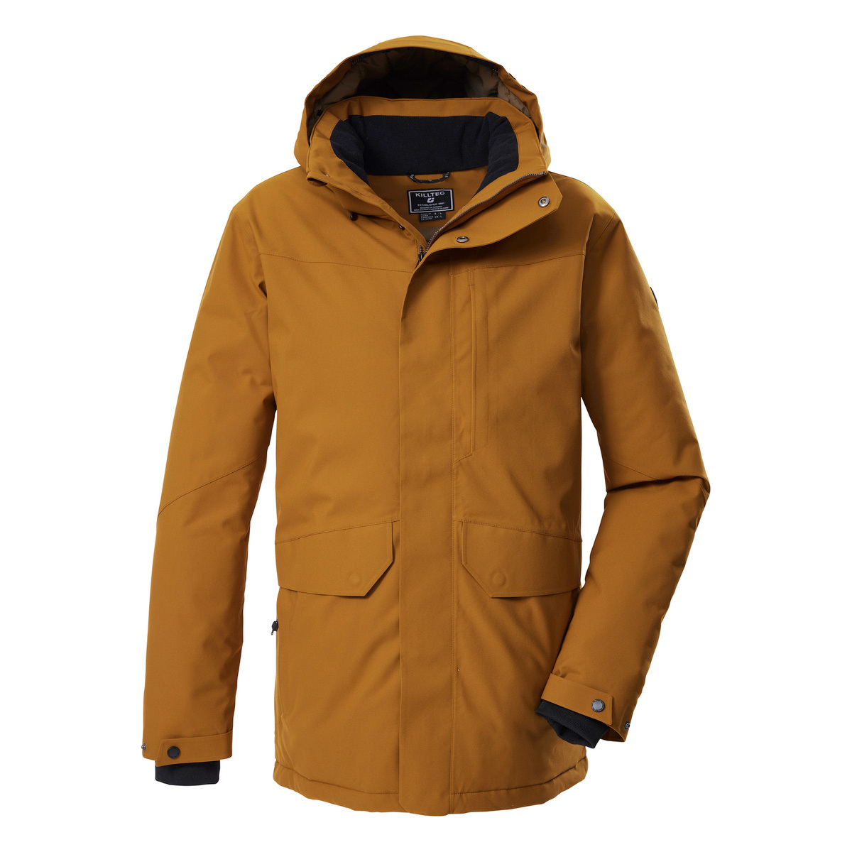 The killtec men’s winter functional parka impresses with its modern design and functional properties. It has taped seams and is waterproof and windproof with a 10,000 mm water column (note: the parka should be re-impregnated from time to time). At the same time, the parka is breathable with a water vapor permeability of 3,000 g/m²/24 h. The hood is adjustable in length and can be zipped off if required. The cuffs can be adjusted with Velcro fasteners and are fitted with comfortable knitted cuffs. Various pockets offer plenty of storage space. The concealed 2-way zipper can be opened from the top and bottom for freedom of movement. It also has a chin guard. This parka has a PFAs-free finish and is partly made from recycled material.