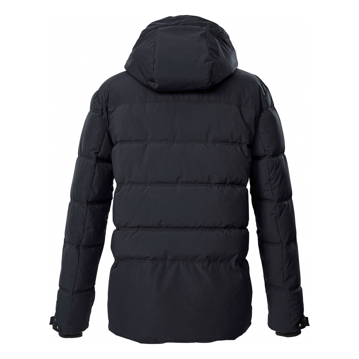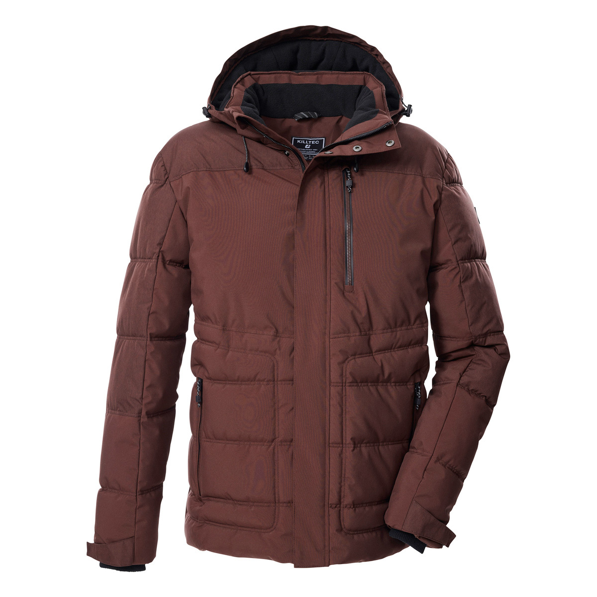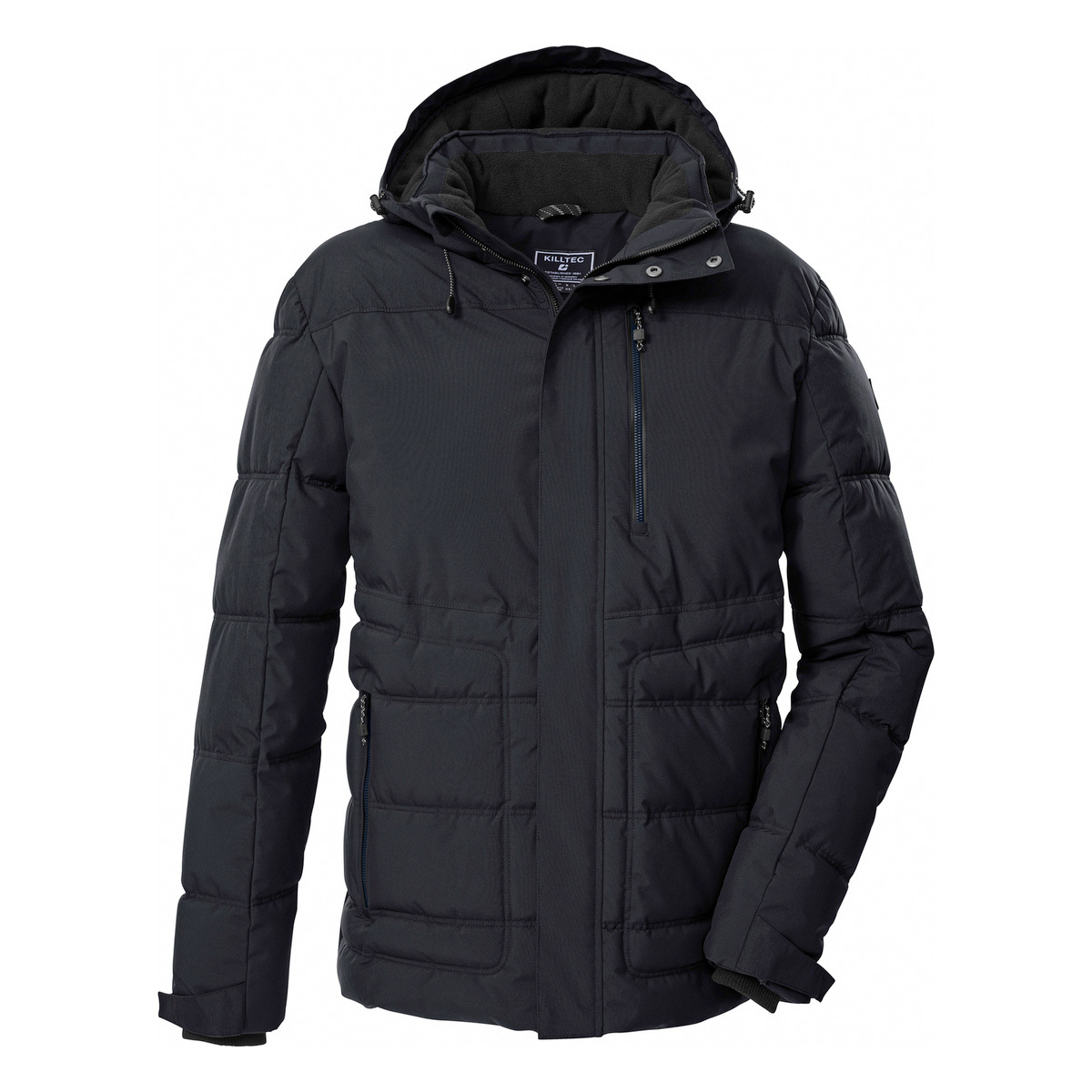 The men’s quilted jacket from killtec also impresses with its modern design and functional properties. With a 10,000 mm water column and the breathable coating with a water vapor permeability of 3,000 g/m²/24 h, the jacket is water and wind repellent. The hood is adjustable and can be removed if required. The cuffs are adjustable and fitted with comfortable knitted cuffs. The width of the hem can be adjusted using a drawstring. Three zip pockets and an inside pocket offer space for a cell phone, keys etc. This jacket has been impregnated without PFAs and is partly made from recycled material.