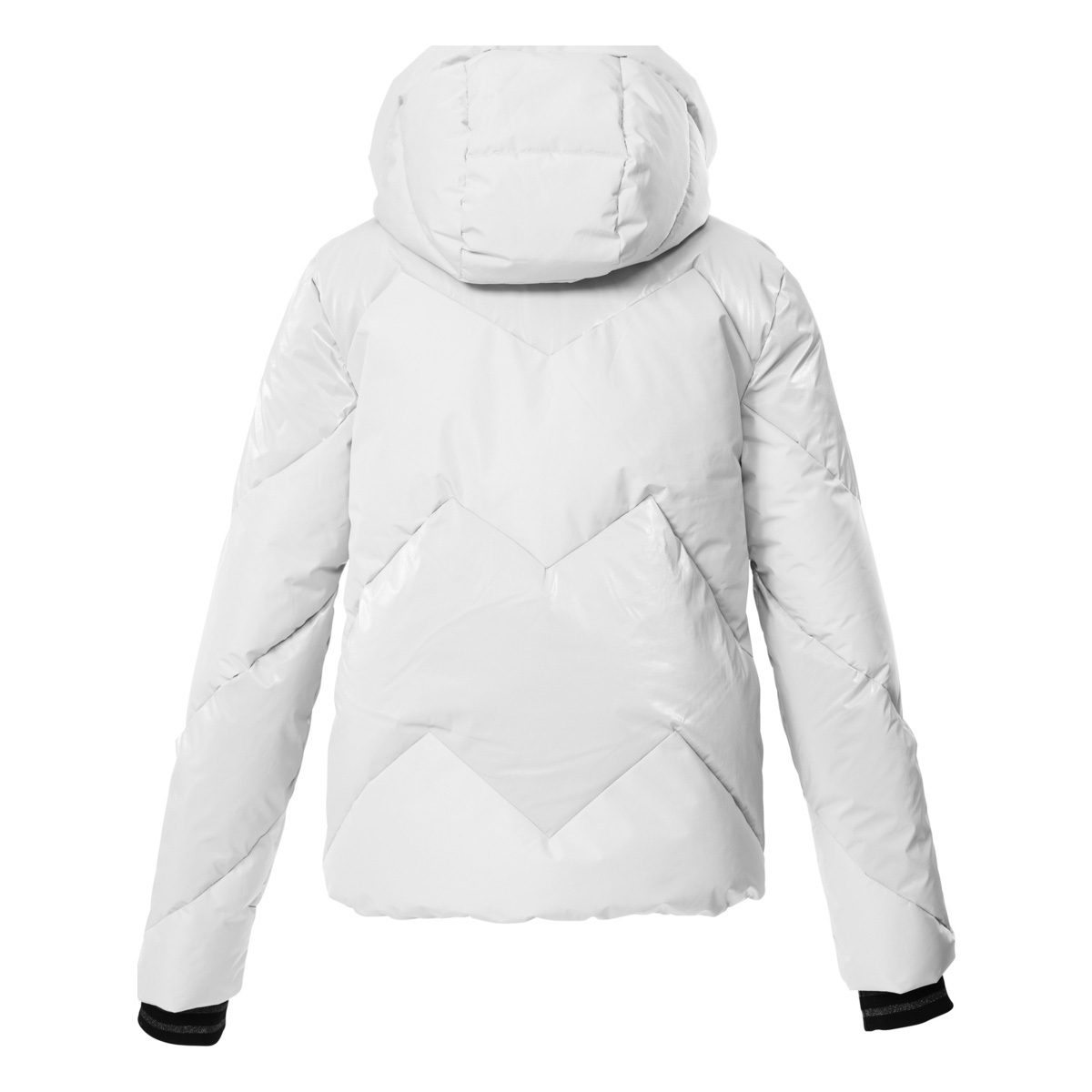 Hit the slopes in style with the killtec women’s ski jacket. The elaborate quilting and matt-gloss look characterize this jacket. It is windproof and water-repellent with a water column of 10,000 mm. Soft fleece at the back and in the hood provides additional warmth. The jacket is equipped with a rubberized, non-slip snow skirt and an adjustable hood. Numerous pockets offer plenty of storage space for your ski pass, ski goggles, cell phone, etc. There are comfortable knitted cuffs at the sleeve ends to prevent wind and cold from penetrating the sleeves. The front zipper is equipped with a practical chin guard. This jacket has been impregnated without PFAs and is partly made from recycled material.