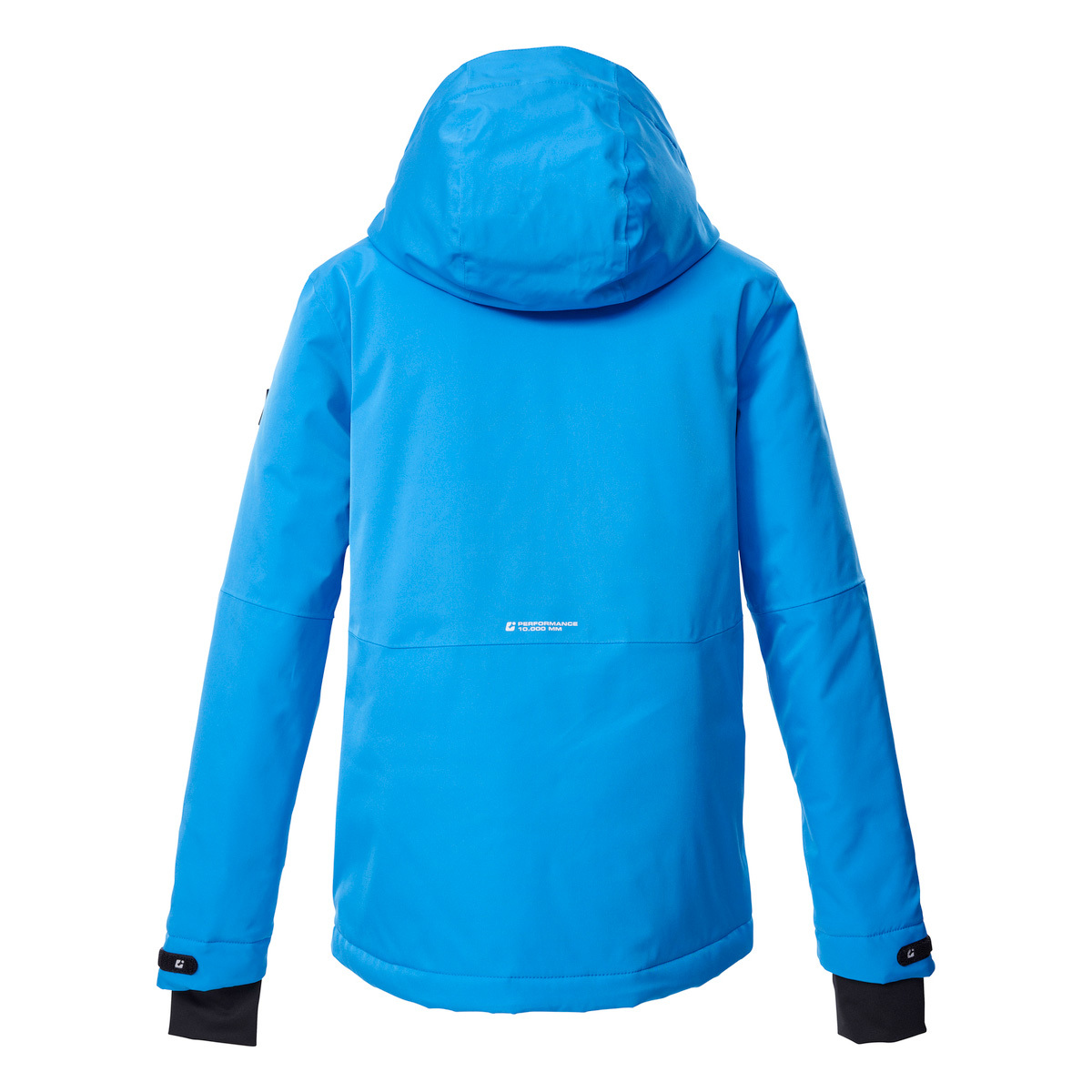 The killtec children’s functional jacket with adjustable hood is ready for any outdoor winter adventure. The material is windproof and waterproof thanks to taped seams and a 10,000 mm water column (our tip: the jacket should be waterproofed from time to time). The jacket is equipped with adjustable cuffs with Lycra cuffs and a non-slip snow guard. Numerous closable pockets and a cell phone pocket on the inside offer plenty of storage space. The chin guard on the zipper prevents the skin from being pinched. The jacket is also equipped with reflective elements. This jacket has been impregnated without PFAs.
