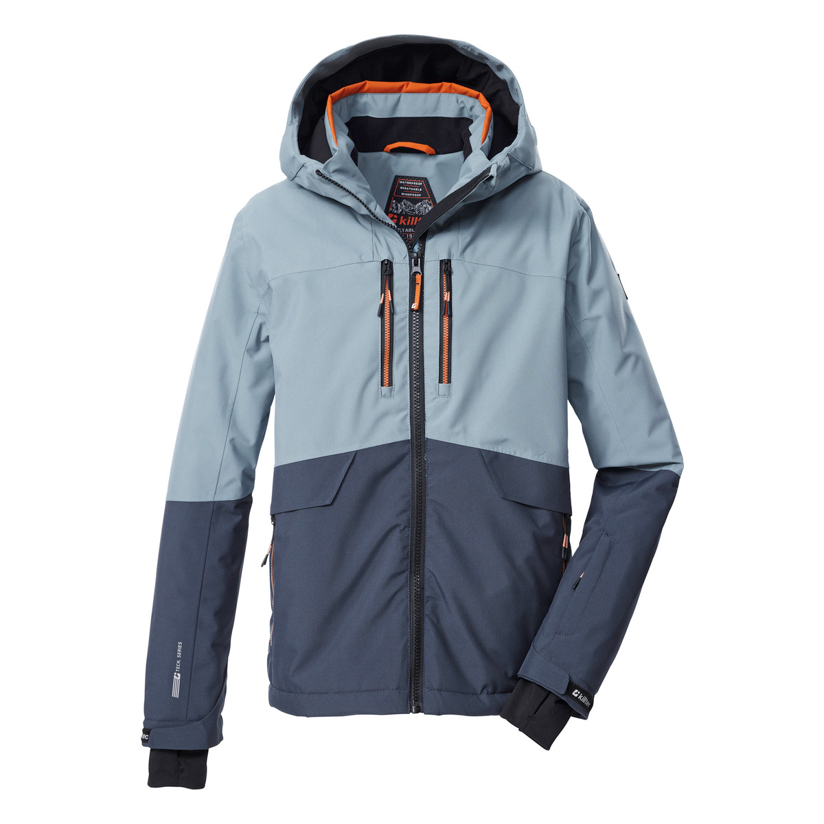 The killtec Kids ski jacket combines trendy design with clever features. The color block in a trendy color combination and reflective elements make the ski jacket a real eye-catcher. The jacket has taped seams and is waterproof and windproof with a water column of 10,000 mm (our tip: the jacket should be waterproofed from time to time). It is also breathable (3,000 g/m²/24 h). The hood and hem are adjustable. The zipper has a practical chin guard that prevents the skin from being pinched. The jacket is also equipped with a non-slip, rubberized snow skirt, adjustable cuffs with Lycra cuffs and numerous practical pockets (side, chest and inside pockets, ski pass pocket). This jacket has been impregnated without PFAs.