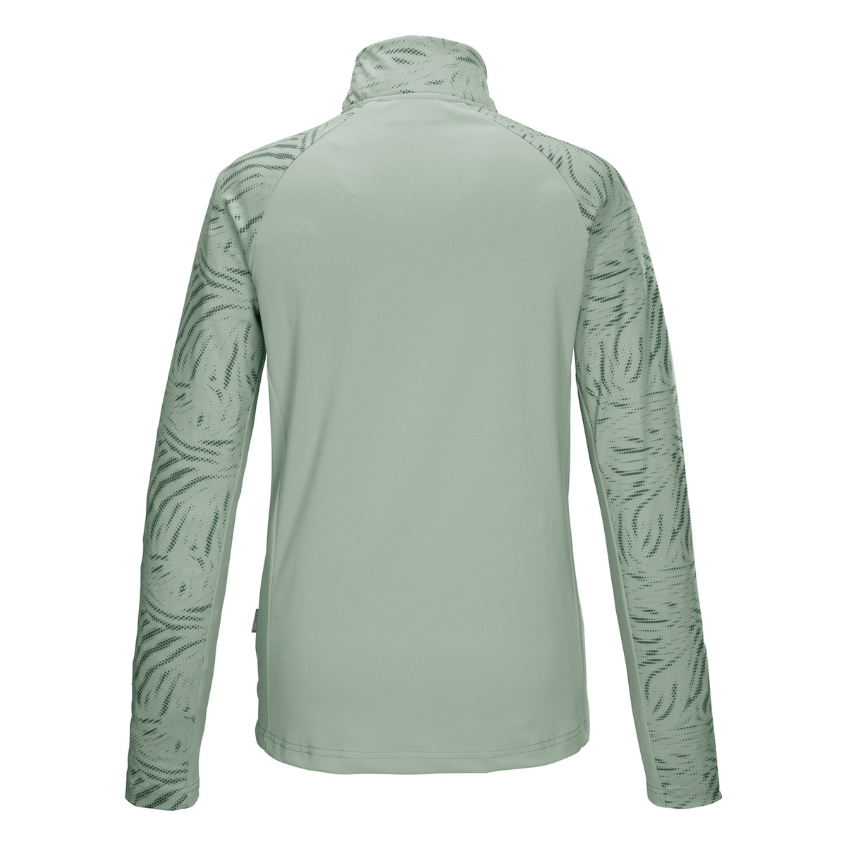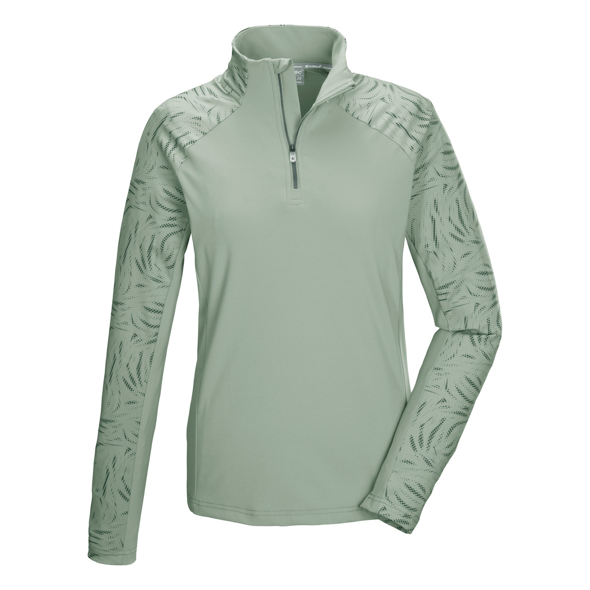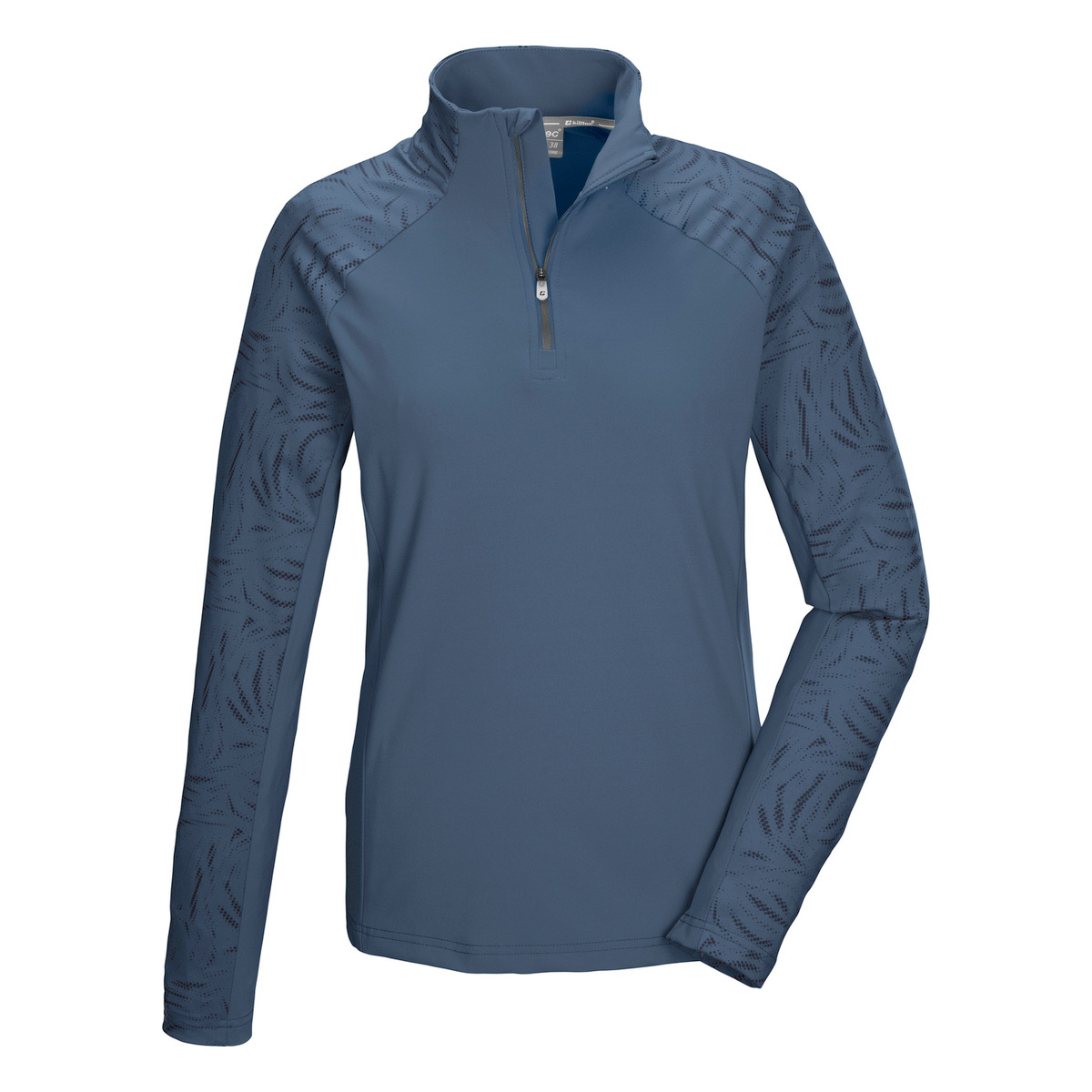 The women’s functional shirt with patterned sleeves is the perfect companion for winter outdoor activities. It keeps you nice and warm and promises a high level of comfort. The stand-up collar provides additional protection from the wind and cold. The zipper makes it easy to put on and take off and also has a practical chin guard.