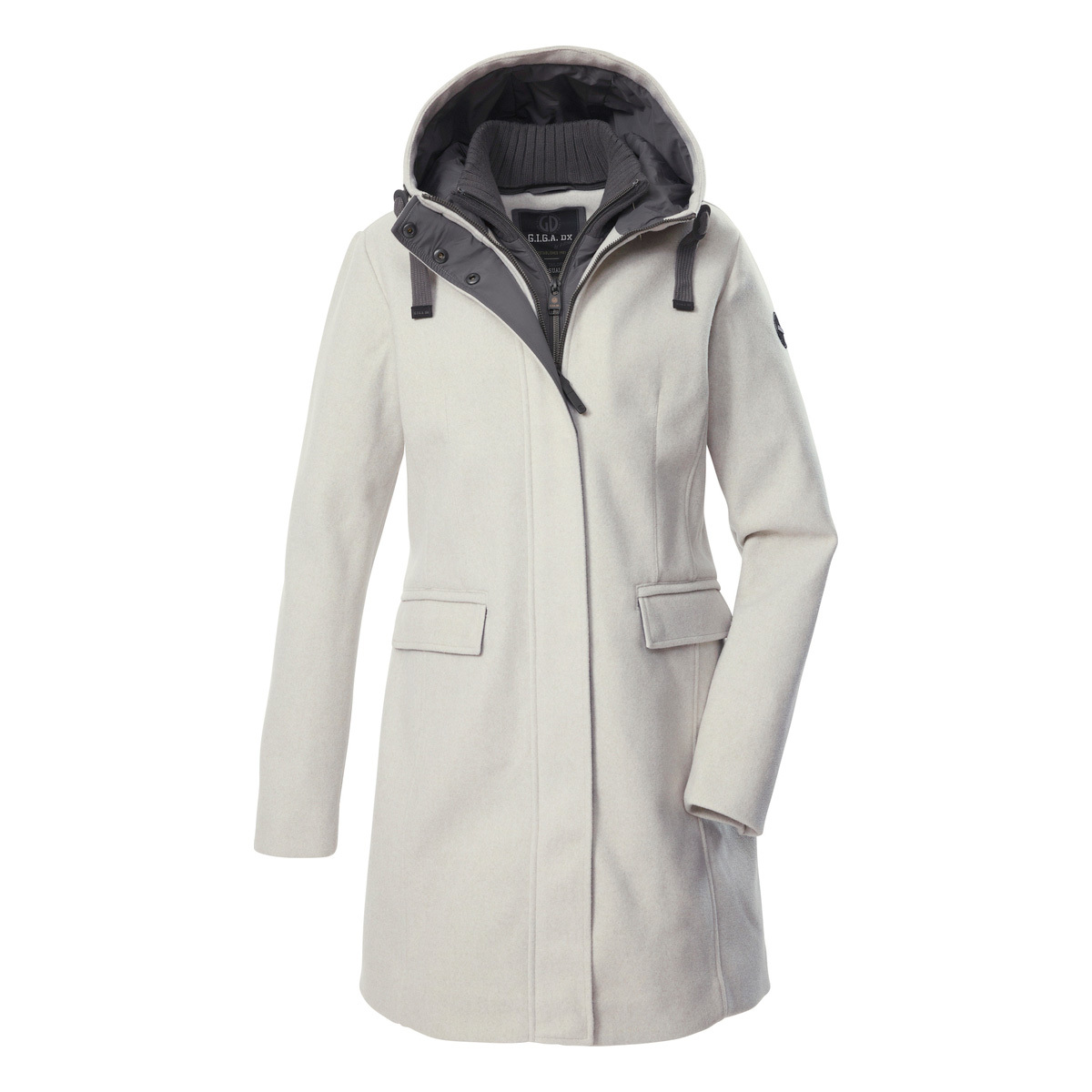 Der Damen Parka von G.I.G.A. DX mit Kapuze und einzippbarem Gilet ist windabweisend und der perfekte Begleiter in der Übergangszeit. Die Kapuze lässt sich durch einen Kordelzug regulieren. Der verdeckte 2-Wege-Reißverschluss lässt sich von oben und unten öffnen und sorgt so für Bewegungsfreiheit. Zudem ist der Parka mit zwei Taschen ausgestattet. Diese Jacke wurde teilweise aus recyceltem Material hergestellt.
