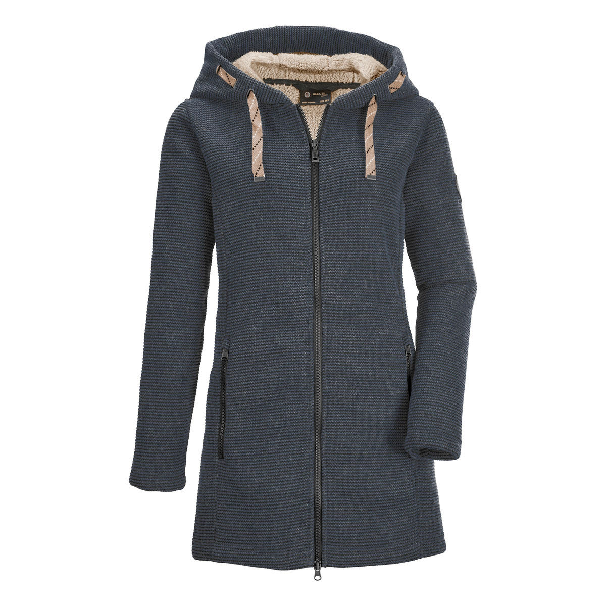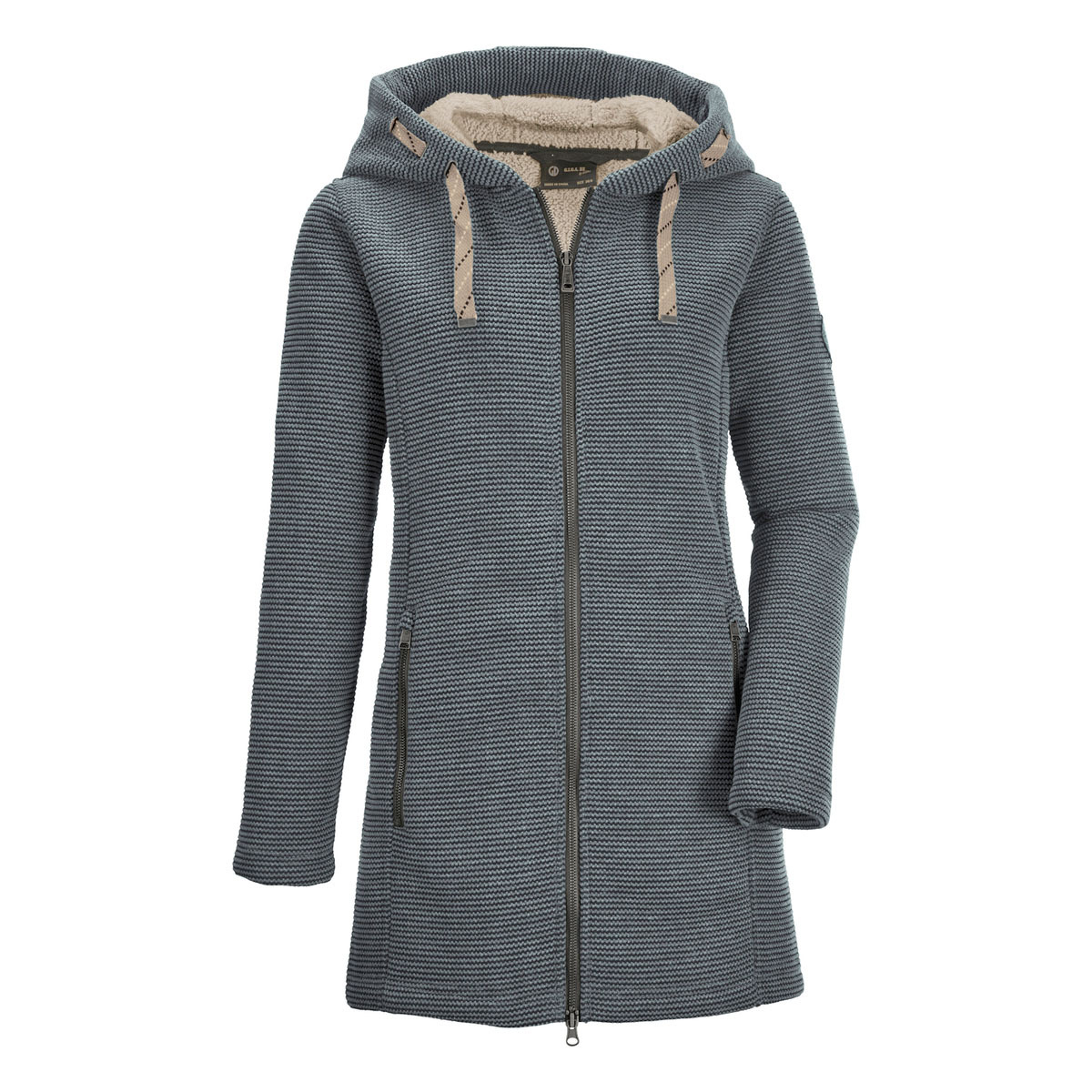 Der Damen Strickfleeceparka von G.I.G.A. DX begleitet zuverlässig durch die kalte Jahreszeit. Ob im Alltag oder für einen Spaziergang im Herbst, dieser windabweisende Parka macht jedes Outfit zu einem echten Hingucker. Die große Kapuze mit besonderer Kordelführung und das weiche Fleecefutter sorgen für kuschelige Wärme. Der 2-Wege-Reißverschluss bietet Bewegungsfreiheit trotz des längeren Schnitts. Die beiden Eingrifftaschen sind mit Zippern verschließbar.