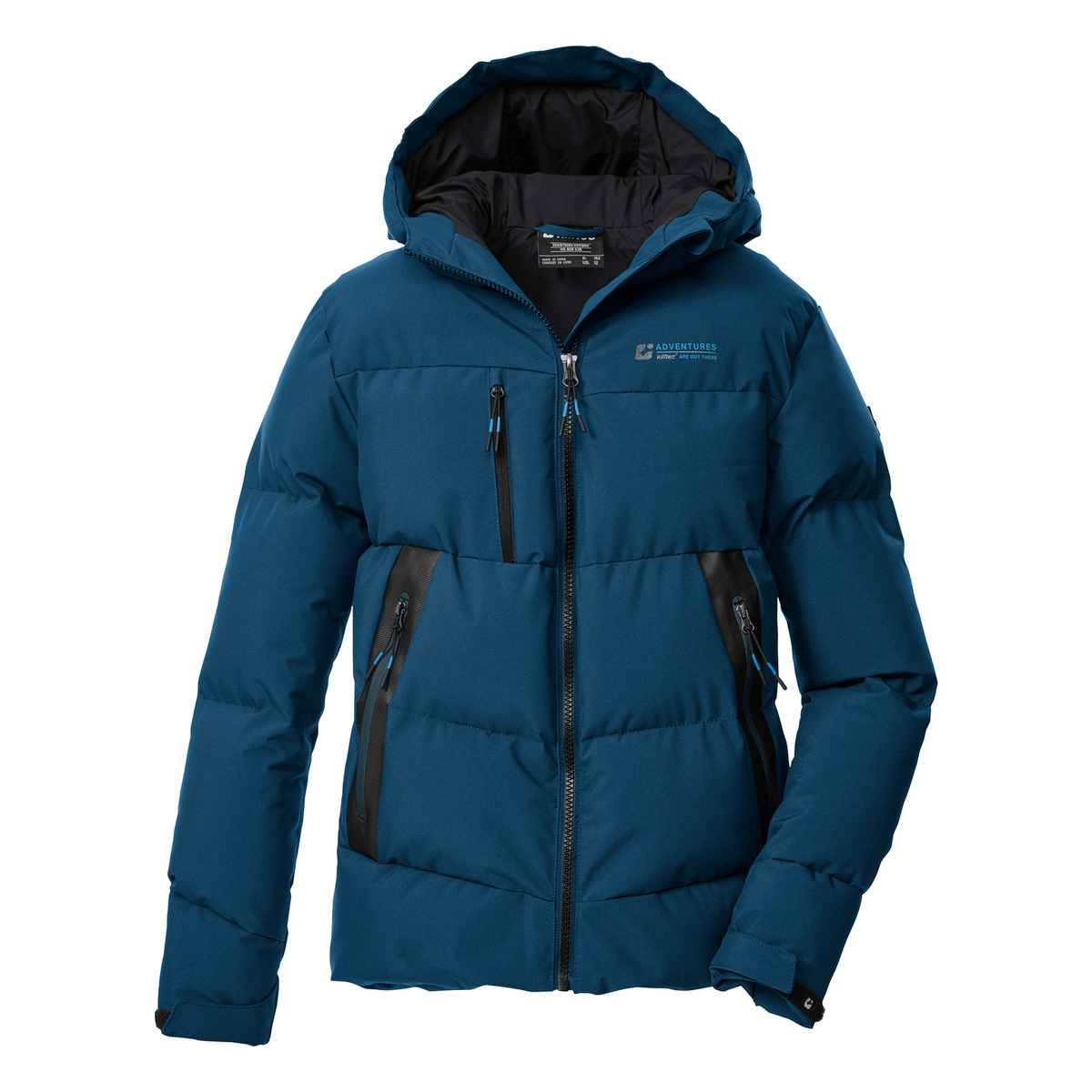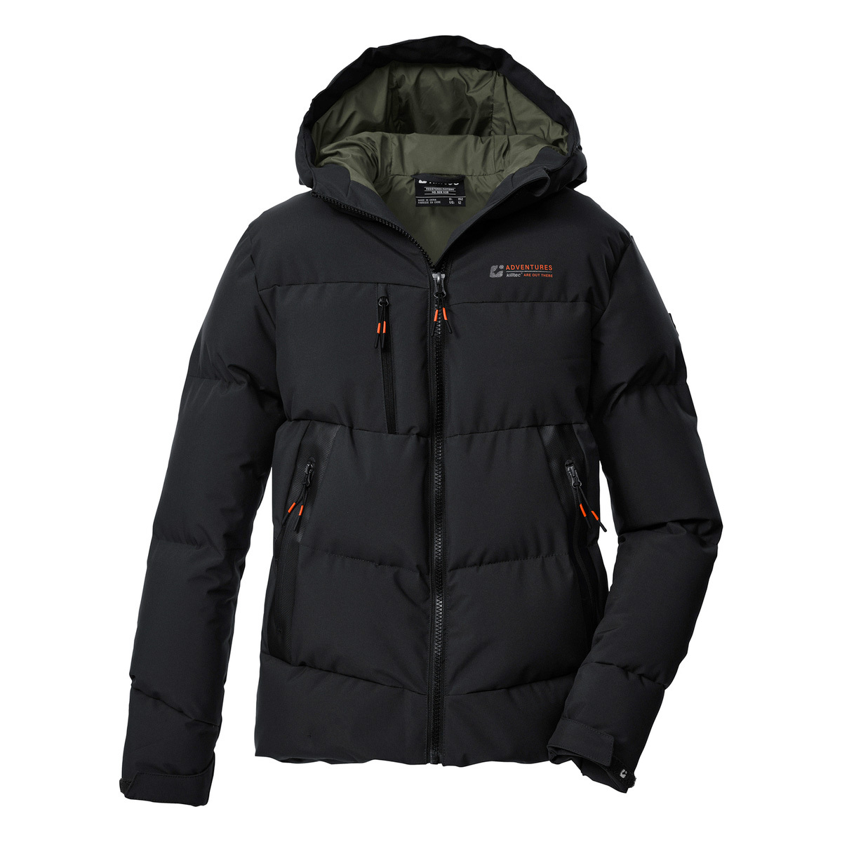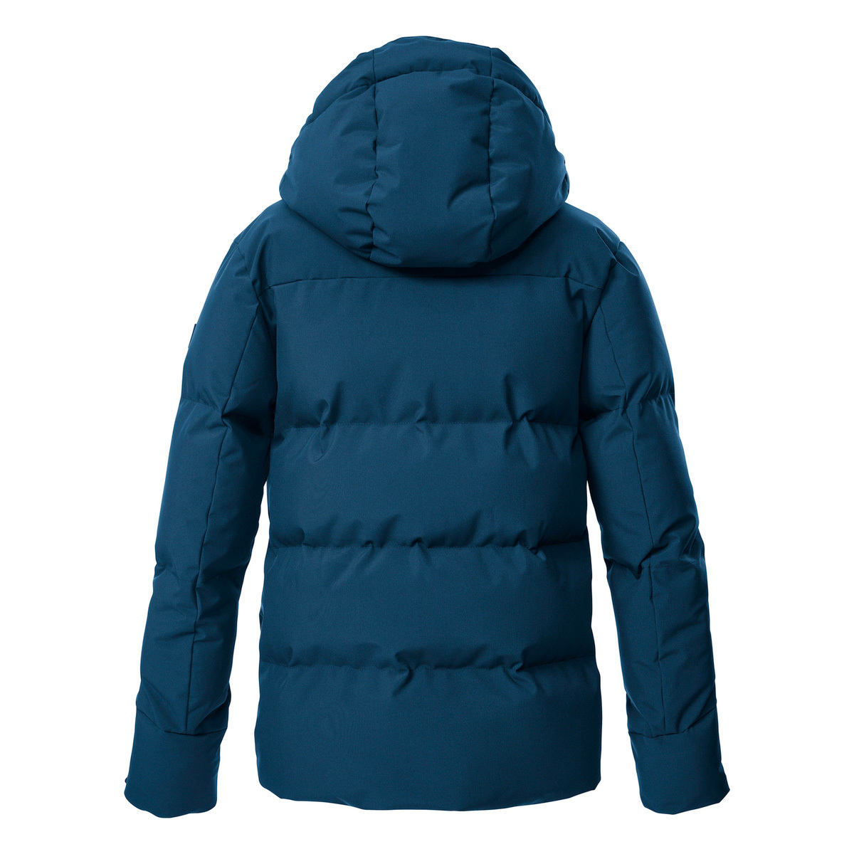 Mit der Kinder Funktionsjacke in Daunenoptik mit Kapuze kann der Winter kommen. Die Jacke ist winddicht und wasserabweisend mit einer 10.000 mm Wassersäule. Die dicke Füllung hält dabei auch an kalten Tagen schön warm. Die Ärmelbündchen lassen sich anhand von Klettverschlüssen verstellen. Der Reißverschluss ist mit einem Kinnschutz versehen, der ein Einklemmen der Haut verhindert. Die seitlichen Eingrifftaschen und die Brusttasche sind verschließbar, sodass nichts verloren geht. Die Jacke ist außerdem mit modisch reflektierenden Elementen ausgestattet, Diese Jacke wurde PFAs-frei imprägniert.