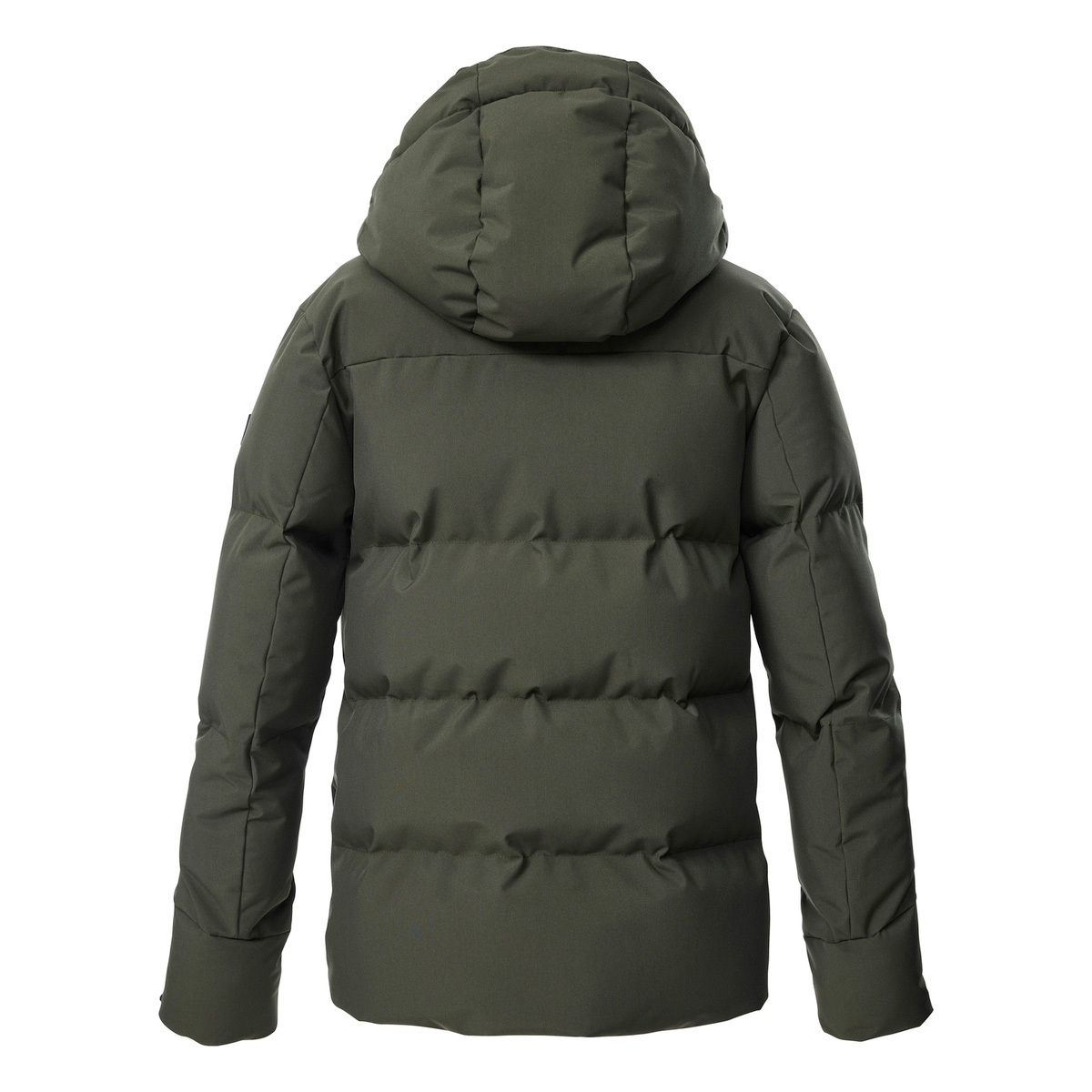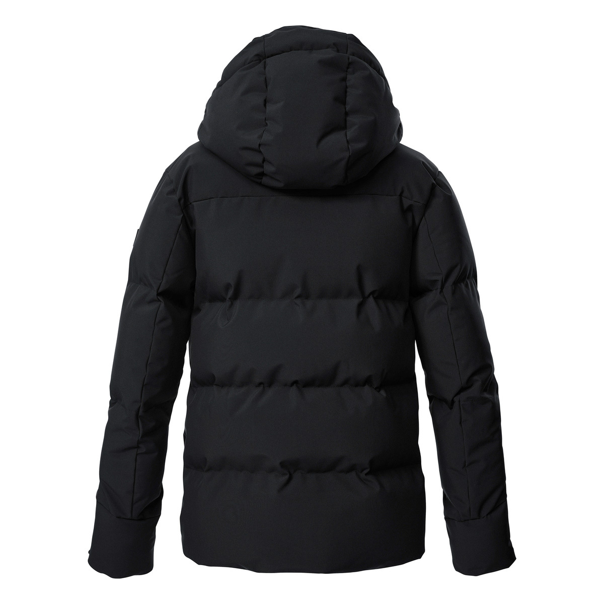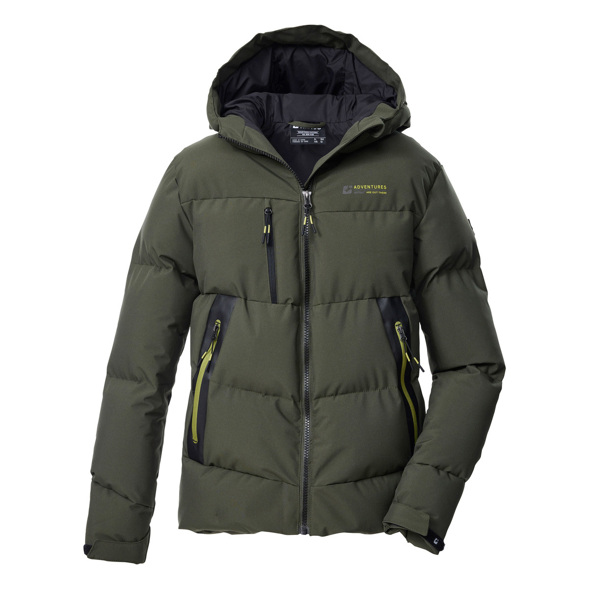 Mit der Kinder Funktionsjacke in Daunenoptik mit Kapuze kann der Winter kommen. Die Jacke ist winddicht und wasserabweisend mit einer 10.000 mm Wassersäule. Die dicke Füllung hält dabei auch an kalten Tagen schön warm. Die Ärmelbündchen lassen sich anhand von Klettverschlüssen verstellen. Der Reißverschluss ist mit einem Kinnschutz versehen, der ein Einklemmen der Haut verhindert. Die seitlichen Eingrifftaschen und die Brusttasche sind verschließbar, sodass nichts verloren geht. Die Jacke ist außerdem mit modisch reflektierenden Elementen ausgestattet, Diese Jacke wurde PFAs-frei imprägniert.