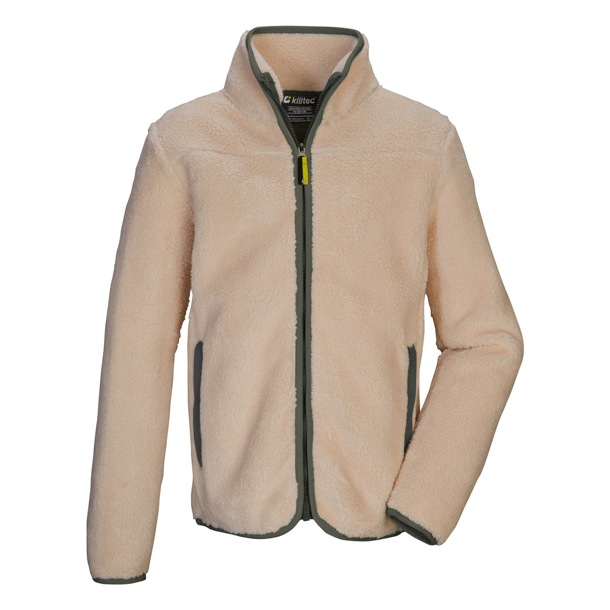 Die weiche Sherpa Fleecejacke von killtec hält Kids in der kalten Jahreszeit kuschelig warm. Der Stehkragen schützt zusätzlich vor Wind und Kälte. Der Reißverschluss ist mit einem Kinnschutz versehen, der ein Einklemmen der Haut verhindert. Die Jacke ist zudem mit seitlichen Eingrifftaschen sowie elastischen Bündchen ausgestattet.