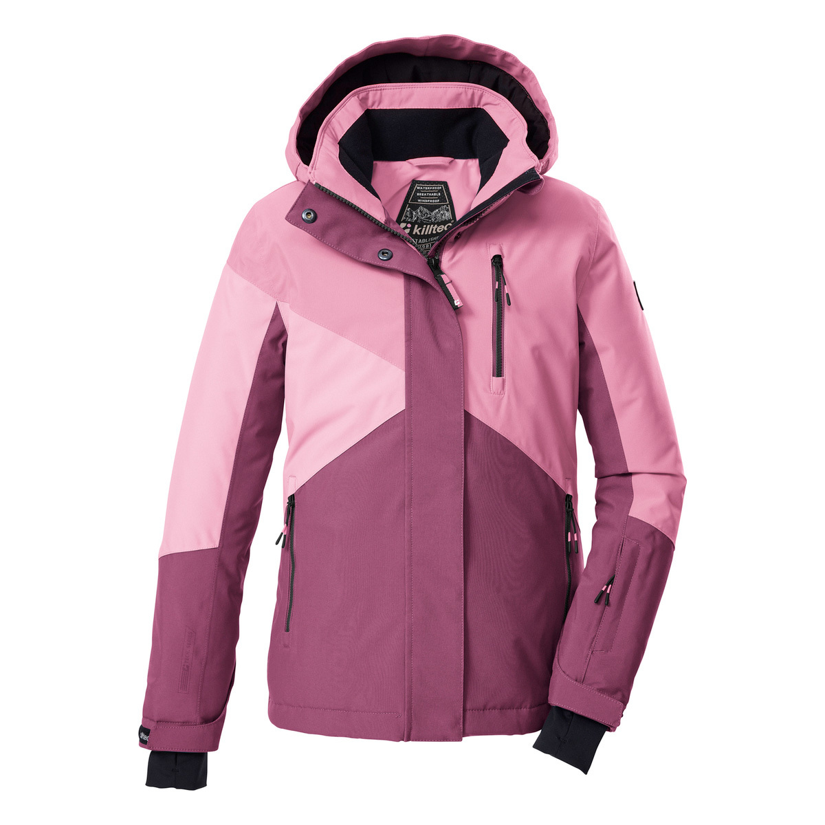 Die killtec Ski-Funktionsjacke für Mädchen besticht durch angesagtes Colourblock Design und praktische Features. Die Jacke hat verschweißte Nähte und ist wasser- und winddicht mit einer 10.000 mm Wassersäule (Unser Tipp: ab und zu sollte die Jacke neu imprägniert werden). Gleichzeitig ist sie atmungsaktiv mit einer Wasserdampfdurchlässigkeit von 3.000 g/m²/24 h. Die Jacke ist mit einer regulierbaren Kapuze und einem rutschfesten Schneefang ausgestattet. Der Saum lässt sich anhand eines Kordelzuges regulieren. Die verstellbaren Ärmelabschlüsse sind mit Lycracuffs mit Daumenschlaufen versehen. Diverse praktische Taschen bieten ausreichend Stauraum für Handy, Skipass und Co. Der versteckte Reißverschluss hat einen praktischen Kinnschutz. Diese Jacke wurde PFAs-frei imprägniert.